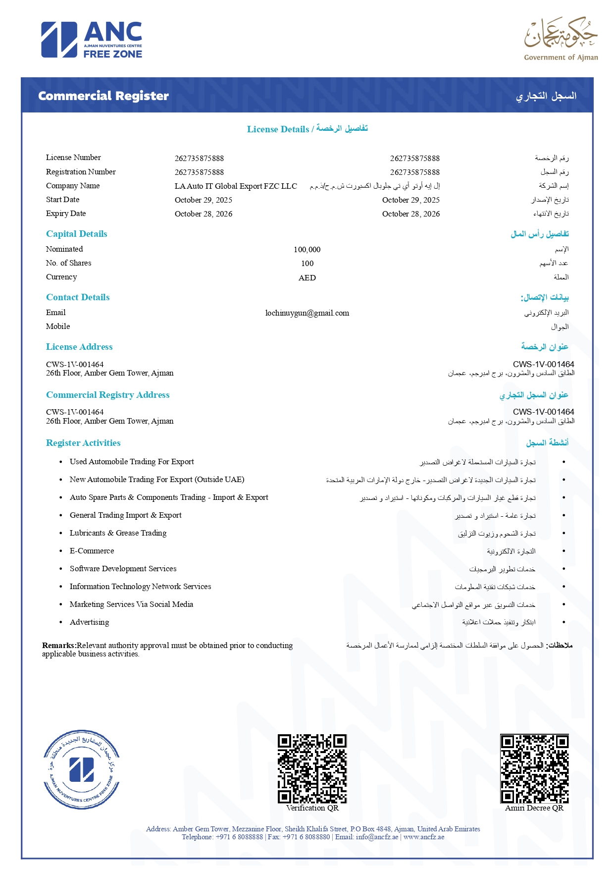 26th Floor, Amber Gem Tower, Ajman